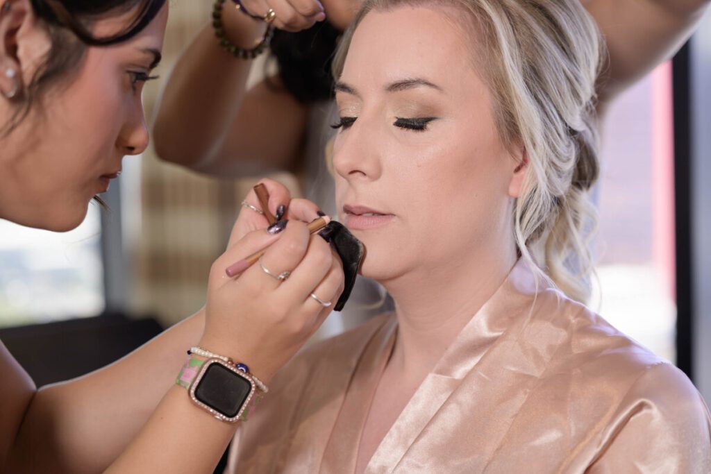 Timelines are built backward for a reason. After hair and makeup are complete, there’s still dressing, bathroom breaks, emotional moments, detail photos, first looks, and travel time. That’s why we intentionally build in a buffer — often one to two hours, depending on your day.